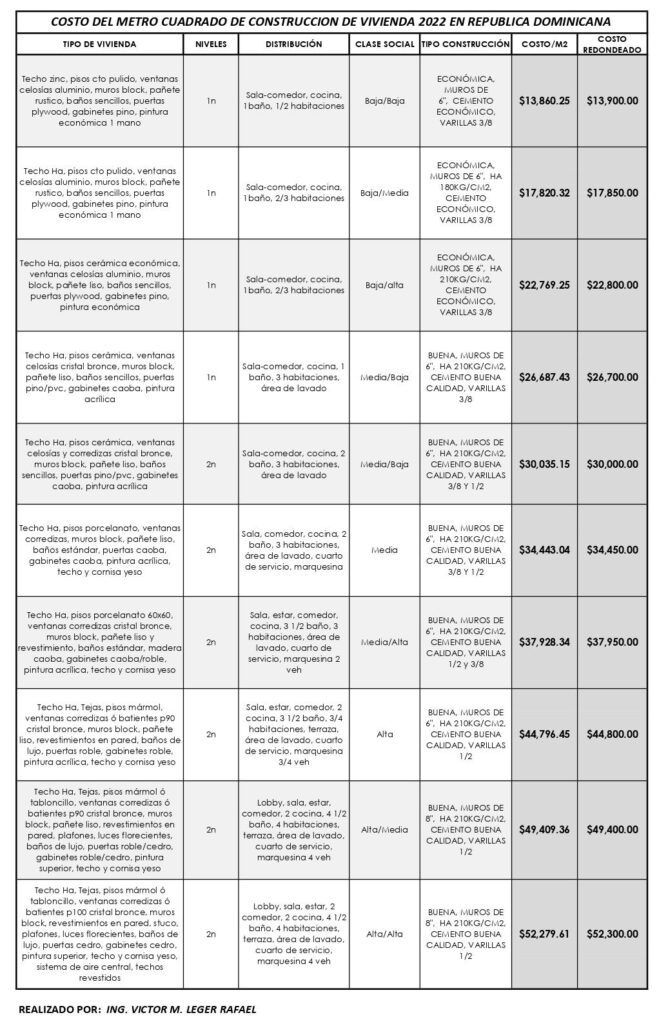 COSTO DEL METRO CUADRADO DE CONSTRUCCION EN LA REPUBLICA DOMINICANA 2022